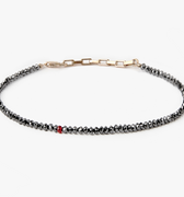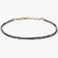 this adjustable black diamond beaded bracelet is finished with an 18k gold anchor chain and our signature ruby.