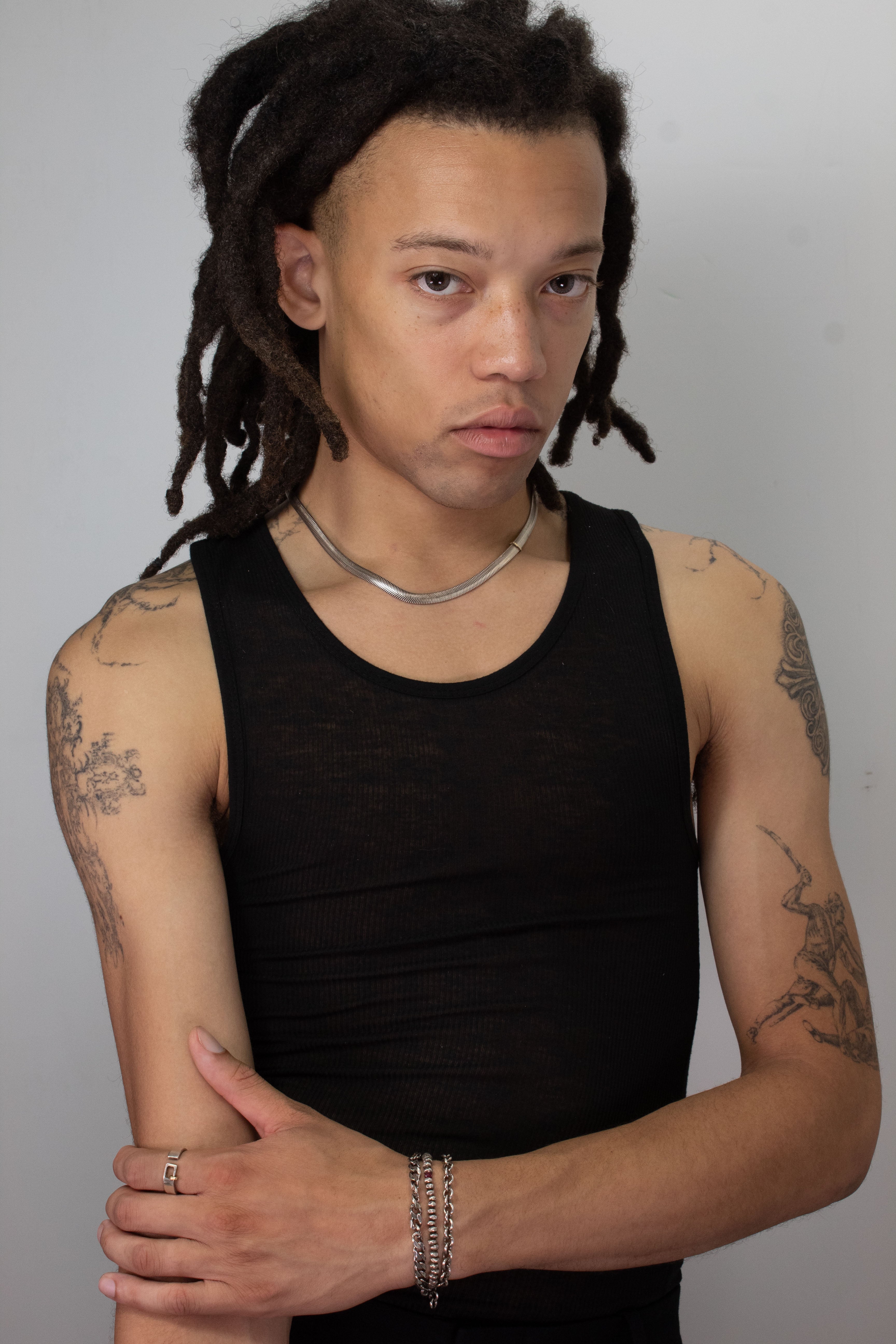 it is constructed in our lower east side studio using reclaimed sterling silver and 18k gold and is oxidized creating a darkened finish that will wear over time to a lighter, contrasting patina.