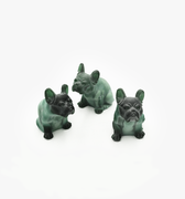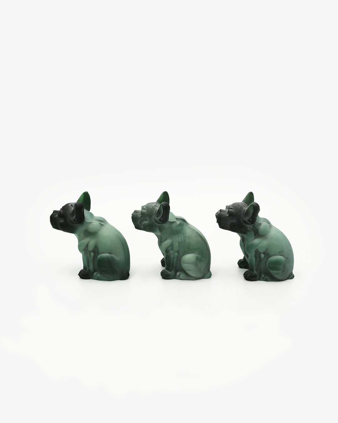 these late 20th century bulldogs are made from malachite bohemian (czech) glass from original 1930’s molds.