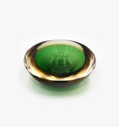 this murano sommerso green to amber geode dish is made by flavio poli for seguso.