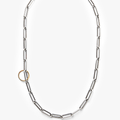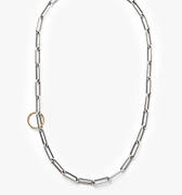this sterling paperclip chain necklace features an offset 18k gold ring. it is constructed in our lower east side studio using reclaimed sterling silver and 18k gold.