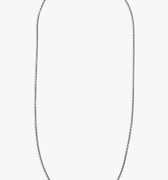 this necklace features a sterling silver cable chain with beaded blue diamond and a single ruby. it is constructed in our lower east side studio using conflict-free gemstones and reclaimed 18k sterling silver then it is oxidized, creating a darkened finish that will wear over time to a lighter, contrasting patina.