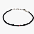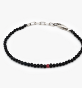 this adjustable beaded onyx stone bracelet is accented by sterling silver box links and finished with our signature ruby.