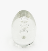 MID CENTURY HEAVY GLASS EGG SHAPED PAPERWEIGHT WITH INTERNAL BUBBLE