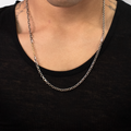 it is constructed in our lower east side studio using reclaimed sterling silver and is oxidized creating a darkened finish that will wear over time to a lighter, contrasting patina.
