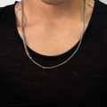 this sterling silver multi-link snake, cable, and curb chain necklace features a floating 18k gold ring.