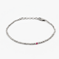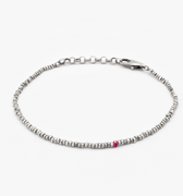 this adjustable bracelet features sterling silver microchip beads and is finished with our signature ruby.