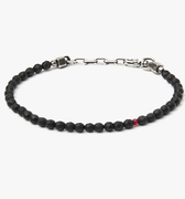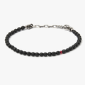 this adjustable beaded onyx stone bracelet is accented by sterling silver box links and finished with our signature ruby.