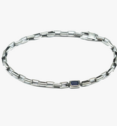 this bracelet features a single offset emerald-cut iolite gemstone that sits along an adjustable, sterling silver box chain.