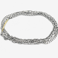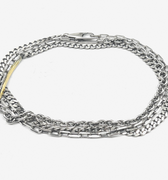 this mixed chain multi wrap bracelet consists of an anchor, curb and cable link and is finished with an 18k flat gold bar.