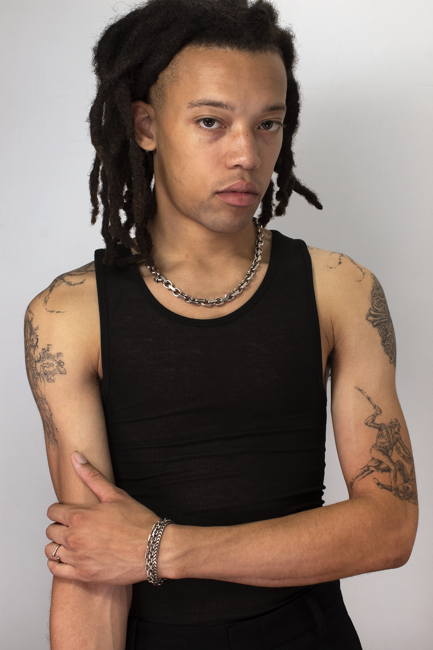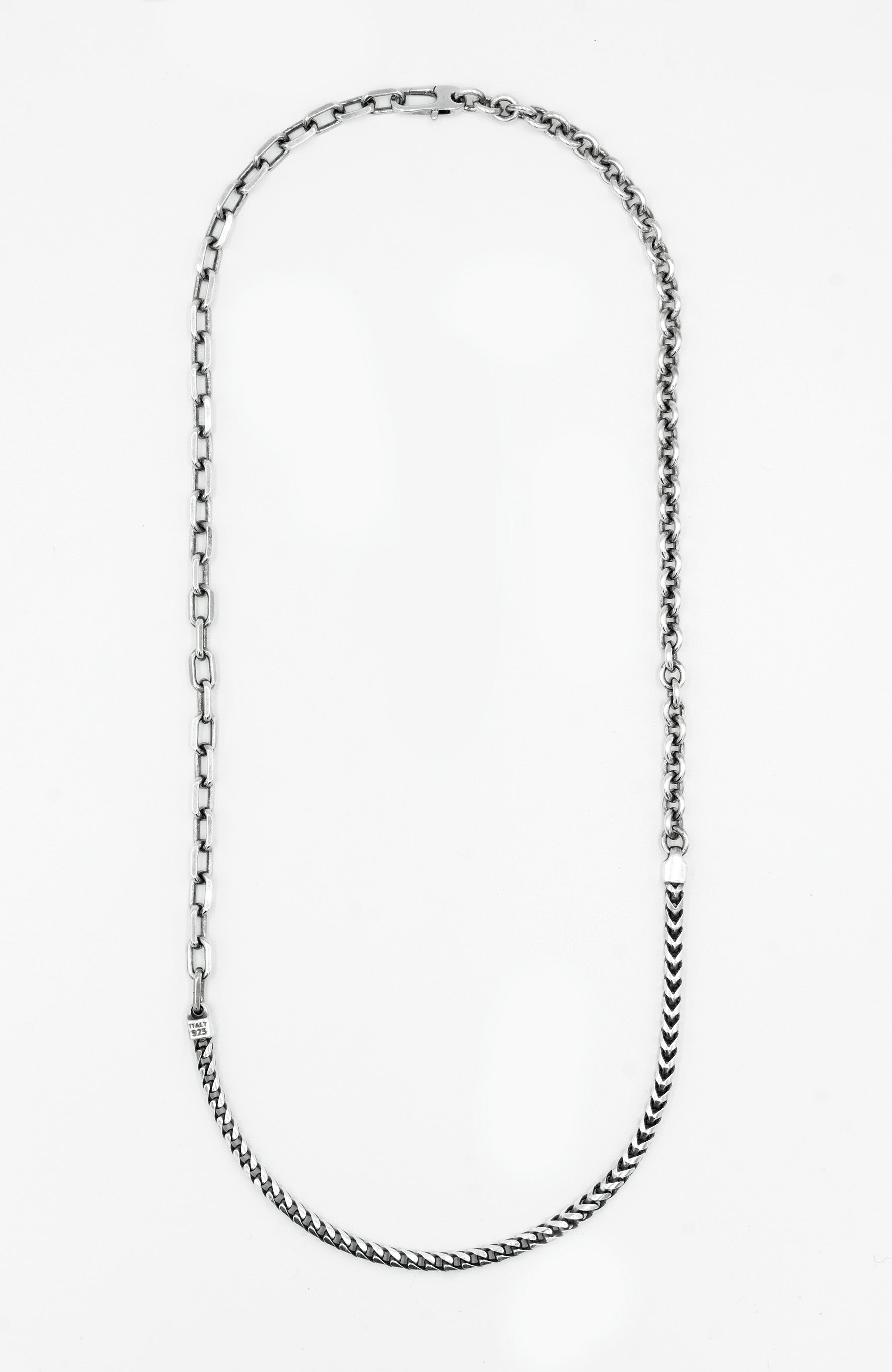 it is constructed in our lower east side studio using reclaimed sterling silver, which is then oxidized - resulting in a darkened finish that will wear over time to a lighter, contrasting patina.